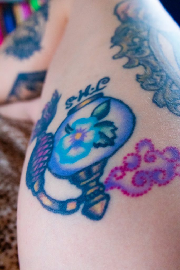 A few examples of Dannie’s own tattoos, collected from a number of artists – some of whom are featured in the gallery! (Included is the dodgy tummy tattoo – the ultimate emo emblem from 2007!) Inspired by a love of music, reading, history, TV shows, movies and personal mementos, Dannie considers her body art to be a scrapbook of memories.